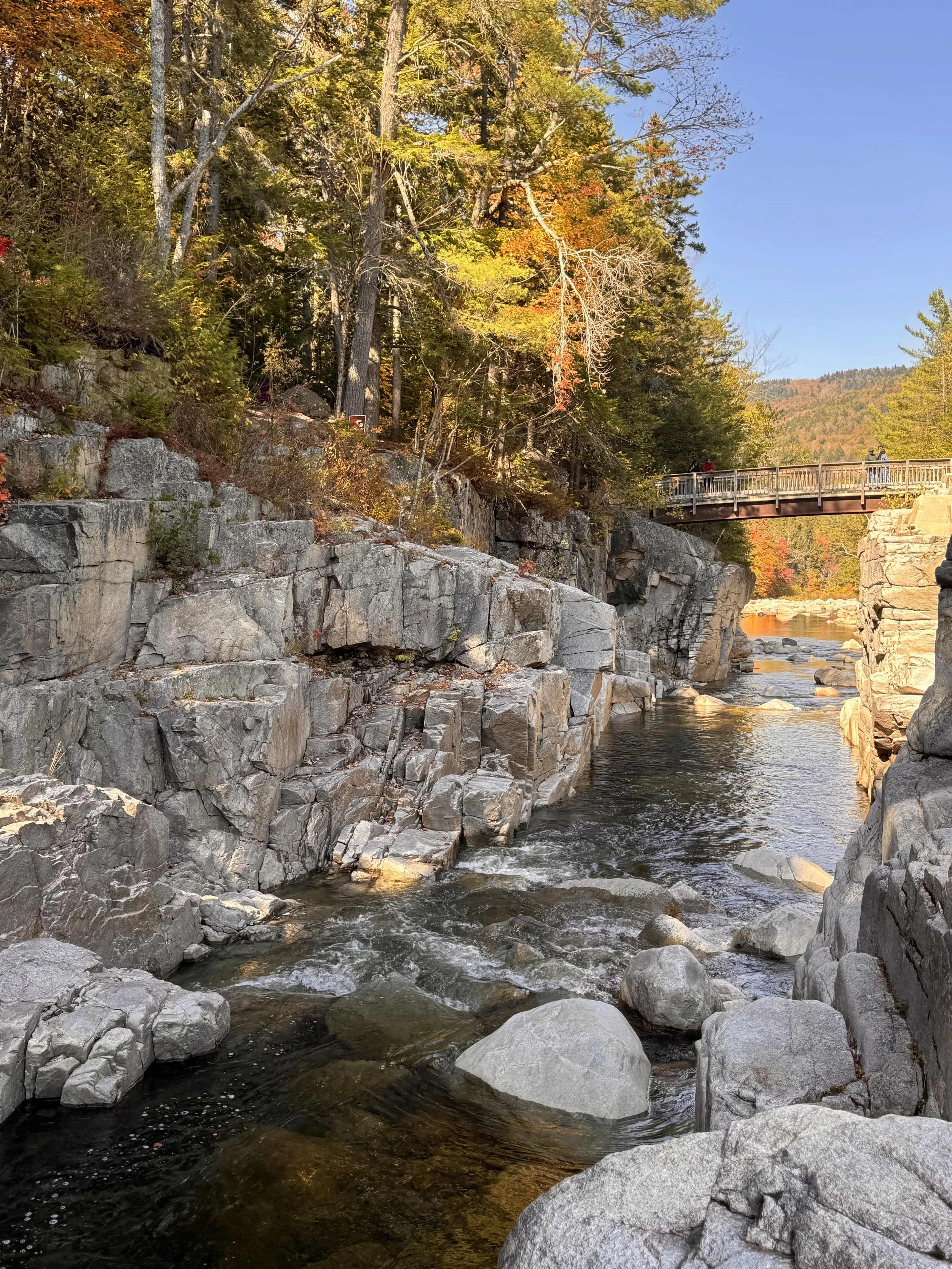 Our next leg took us onto the renowned Kancamagus Highway. This road is a pilgrimage in the fall, a testament to the stunning, raw beauty of the White Mountain National Forest. The canopy overhead was ablaze—a breathtaking blend of goldenrod, fiery orange, and deep russet red. It felt less like a drive and more like moving through a grand cathedral of color.